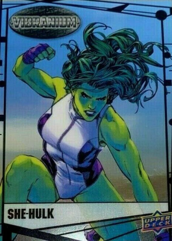 She-Hulk's Marvel cards are available in at least 37 sets. She-Hulk's biggest 7-day price movers are 2015 Upper Deck Marvel Vibranium #52 Base, 2016 Upper Deck Marvel Gems #33 Exquisite (/99), and 2015 Upper Deck Marvel Vibranium #52 Radiance Vibranium /50.