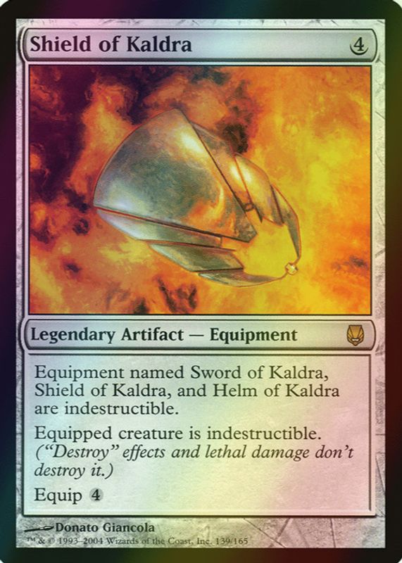 Shield of Kaldra's Magic: The Gathering cards are available in at least 1 sets. Shield of Kaldra's biggest 7-day price movers are 2004 Darksteel #139 Foil, and 2004 Darksteel #139 Base.