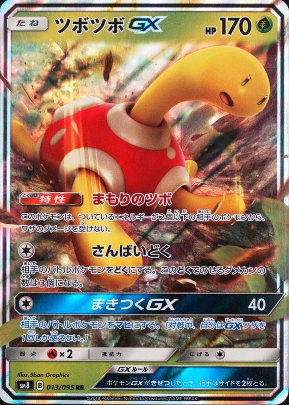 Shuckle GX's Pokemon cards are available in at least 2 sets. Shuckle GX's biggest 7-day price movers are 2018 Sun & Moon: Lost Thunder #017/214 Holo, 2018 Japanese Sun & Moon: Super-Burst Impact #013/095 Double Rare, and 2018 Sun & Moon: Lost Thunder #195/214 Holo (Full Art).