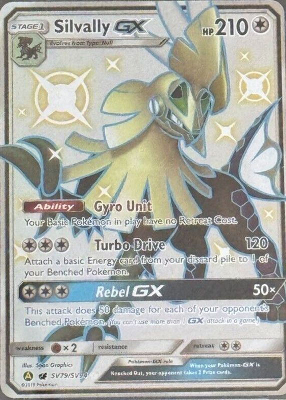 Silvally GX's Pokemon cards are available in at least 7 sets. Silvally GX's biggest 7-day price movers are 2019 Japanese Sun & Moon: Dream League #041/049 Double Rare, 2017 Sun & Moon: Crimson Invasion #119/111 Holo (Secret), and 2019 Sun & Moon: Hidden Fates #SV79/SV94 Shiny Rare (Full Art).