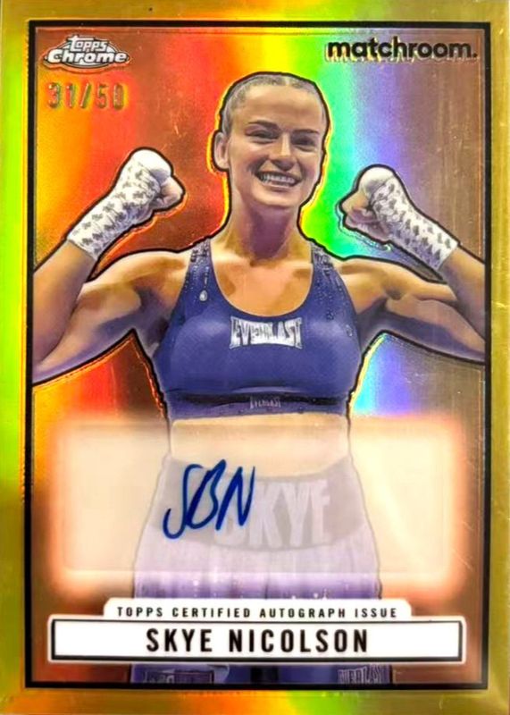 Skye Nicolson's Boxing cards are available in at least 1 sets. Skye Nicolson's biggest 7-day price movers are 2024 Topps Chrome #TRA-SK 1951 Ringside Autographs - Gold Refractor /50, 2024 Topps Chrome #TR-30 1951 Ringside, and 2024 Topps Chrome #TR-30 1951 Ringside - Red Refractor /5.