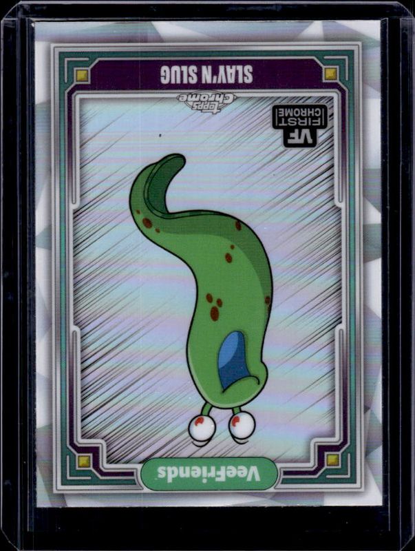 Slay'n Slug's Pop Culture cards are available in at least 3 sets. Slay'n Slug's biggest 7-day price movers are 2025 Topps Chrome VeeFriends #32 Refractor, 2025 Topps Chrome VeeFriends #32 VeeFriends Green Refractor /99, and 2025 Topps Chrome VeeFriends #32 Yellow Refractor.