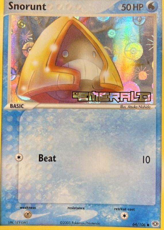 Snorunt's Pokemon cards are available in at least 19 sets. Snorunt's biggest 7-day price movers are 2016 XY: Generations #RC7/RC32 Radiant Collection, 2026 Mega Evolution: Ascended Heroes #227/217 Illustration Rare, and 2026 Mega Evolution: Ascended Heroes #46/217 Love Ball Reverse Holo.
