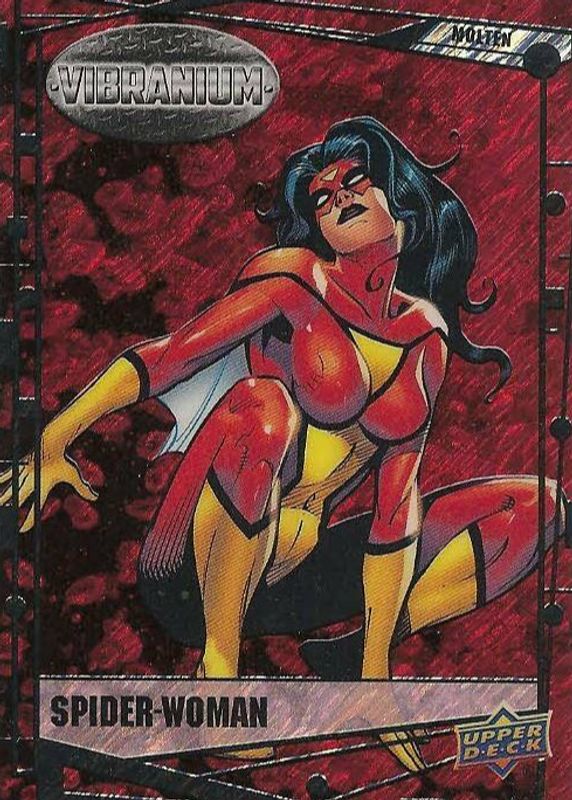 Spider-Woman's Marvel cards are available in at least 27 sets. Spider-Woman's biggest 7-day price movers are 2015 Upper Deck Marvel Vibranium #17 Molten Vibranium /299, 2016 Upper Deck Marvel Gems #19 Exquisite (/199), and 2017 Fleer Ultra Spider-Man #EX10 EX Century Now (/33).