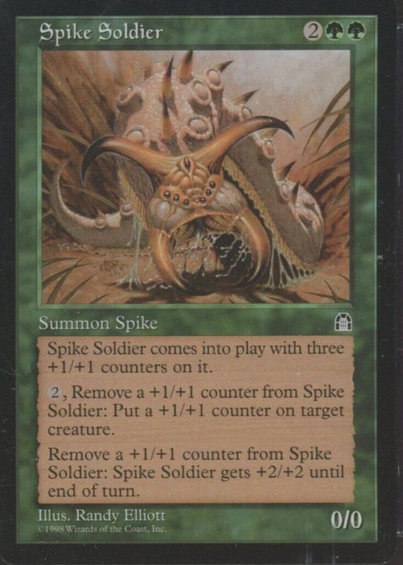 Spike Soldier's Magic: The Gathering cards are available in at least 1 sets. Spike Soldier's biggest 7-day price movers are 1998 Stronghold Base.
