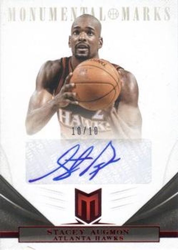 Stacey Augmon's Basketball cards are available in at least 83 sets. Stacey Augmon's biggest 7-day price movers are 2012 Momentum #65 Monumental Marks - Red /5, 2012 Momentum #65 Monumental Marks - Black /1, and 2013 Upper Deck Exquisite Collection #D-SA Dimensions Autographs.