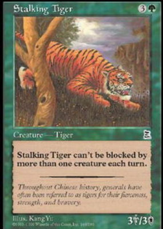 Stalking Tiger's Magic: The Gathering cards are available in at least 2 sets. Stalking Tiger's biggest 7-day price movers are 1999 Portal Three Kingdoms #149 Base, and 1996 Mirage Base.