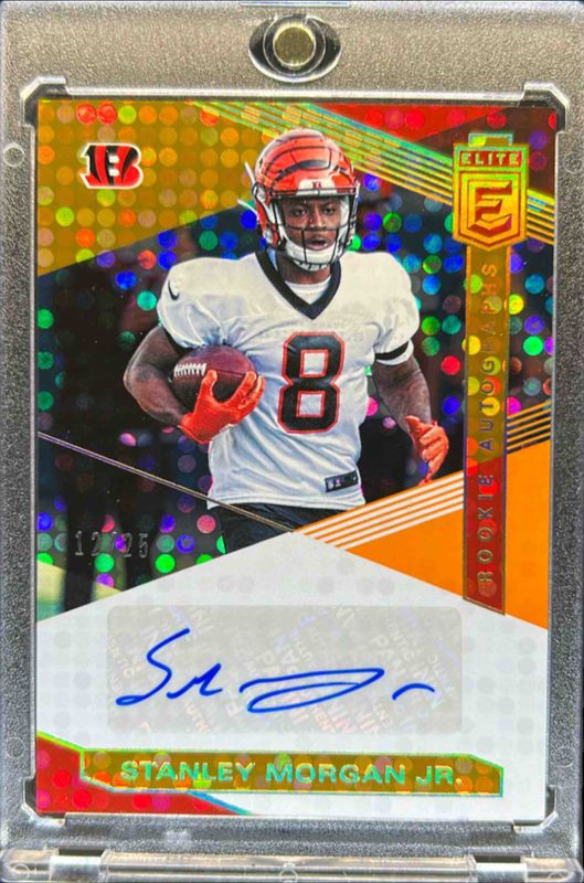 Stanley Morgan's Football cards are available in at least 16 sets. Stanley Morgan's biggest 7-day price movers are 2019 Elite #RA-SM Elite Rookie Autographs - Orange /25, 2019 Majestic #167 Base /49, and 2019 Majestic #167 Gold /25.