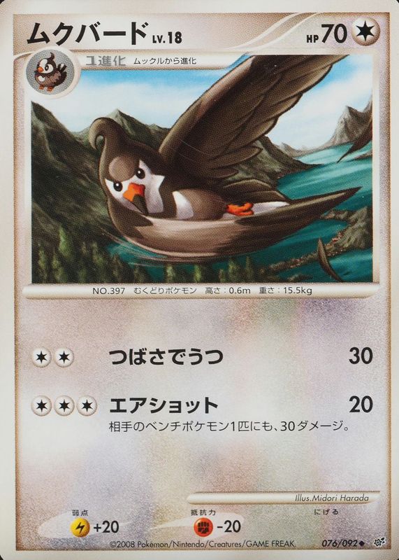 Staravia's Pokemon cards are available in at least 11 sets. Staravia's biggest 7-day price movers are 2008 Japanese Diamond & Pearl: Intense Fight in the Destroyed Sky #076/092 Unlimited, 2012 Japanese Black & White: Thunder Knuckle #044/051 1st Edition, and 2015 Japanese XY: Red Flash #052/059 1st Edition.