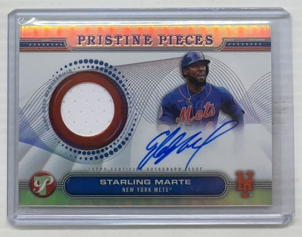 Starling Marte's Baseball cards are available in at least 84 sets. Starling Marte's biggest 7-day price movers are 2024 Topps Pristine #PPAR-SMA Pristine Pieces Autographs Relics, 2024 Topps Pristine #PPAR-SMA Pristine Pieces Autographs Relics - Superfractor /1, and 2024 Topps Museum Collection #MMR-SMA Meaningful Materials Relics - Sapphire /25.