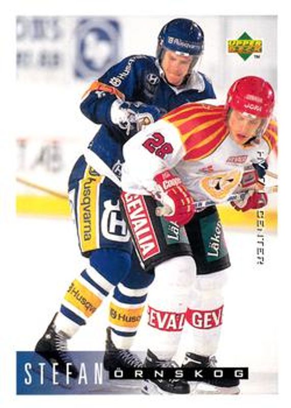 Stefan Ornskog's Hockey cards are available in at least 2 sets. Stefan Ornskog's biggest 7-day price movers are 1995 Upper Deck Swedish Elite #83 Base, 1997 Upper Deck Collector's Choice Swedish #C23 You Crash the Game Exchange, and 1997 Upper Deck Collector's Choice Swedish #UD8 Upper Deck Selects.