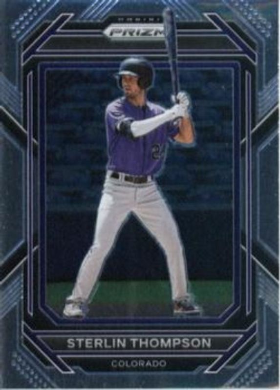 Sterlin Thompson's Baseball cards are available in at least 4 sets. Sterlin Thompson's biggest 7-day price movers are 2023 Prizm #153 Base, 2023 Prizm #153 Gold Vinyl /1, and 2023 Prizm #153 Orange Wave /50.
