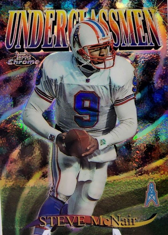 Steve McNair's Football cards are available in at least 84 sets. Steve McNair's biggest 7-day price movers are 1997 Topps Chrome #U9 Underclassmen - Refractor, 2023 Topps Motif #CSIG-SMC Cut Signatures /1, and 1995 Action Packed Rookies & Stars #2 Instant Impressions.
