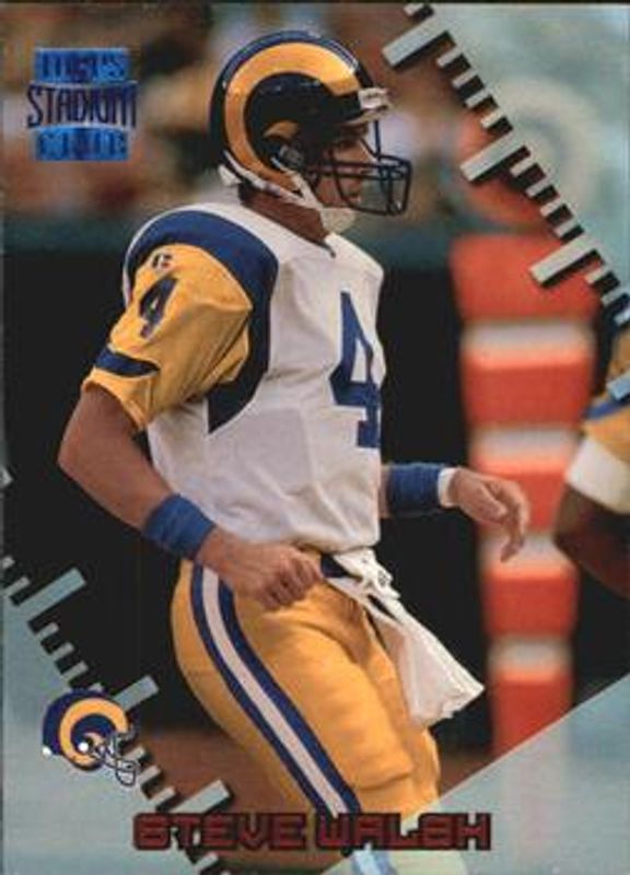Steve Walsh's Football cards are available in at least 23 sets. Steve Walsh's biggest 7-day price movers are 1996 Topps Stadium Club #329 Members Only, 1996 Topps Stadium Club #329 Base, and 1996 Topps #327 Base.
