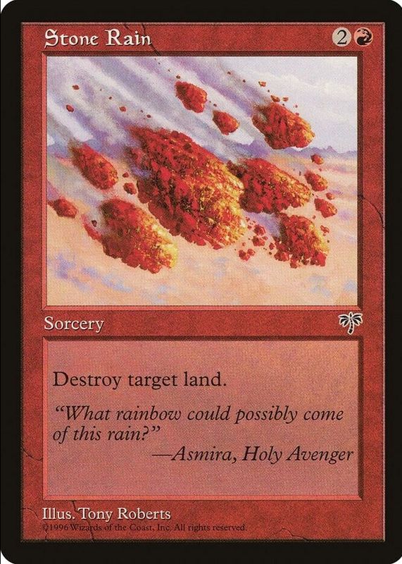 Stone Rain's Magic: The Gathering cards are available in at least 7 sets. Stone Rain's biggest 7-day price movers are 1996 Mirage Base, 1999 Portal Three Kingdoms #123 Base, and 1993 Unlimited Edition Base.