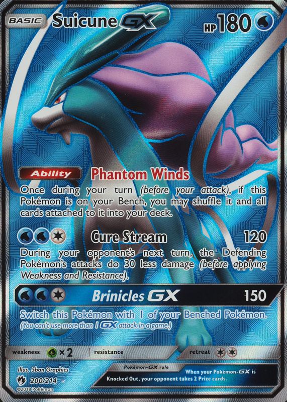 Suicune GX's Pokemon cards are available in at least 2 sets. Suicune GX's biggest 7-day price movers are 2018 Japanese Sun & Moon: Super-Burst Impact #028/095 Double Rare, 2018 Japanese Sun & Moon: Super-Burst Impact #106/095 Hyper Rare, and 2018 Sun & Moon: Lost Thunder #060/214 Holo.
