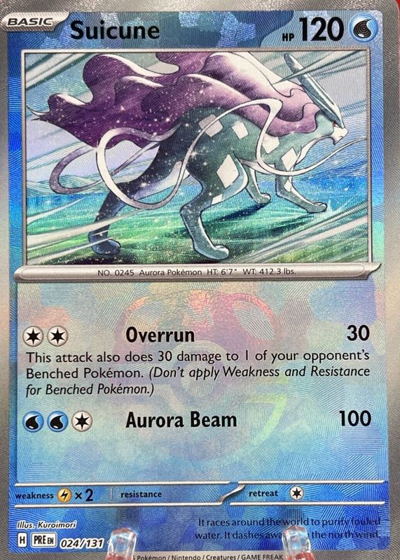 Suicune's Pokemon cards are available in at least 19 sets. Suicune's biggest 7-day price movers are 2025 Mega Evolution: Phantasmal Flames #26/94 Holo, 2025 Scarlet & Violet: Prismatic Evolutions #024/131 Master Ball Reverse Holo, and 2001 Neo Revelation #14/64 Unlimited Holo.
