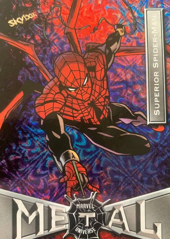 Superior Spider-Man's Marvel cards are available in at least 2 sets. Superior Spider-Man's biggest 7-day price movers are 2021 Skybox Marvel Metal Universe Spider-Man #88 Grandiose, 2021 Skybox Marvel Metal Universe Spider-Man #188 Light FX Yellow (High Series), and 2021 Skybox Marvel Metal Universe Spider-Man #88 Light FX Gold.