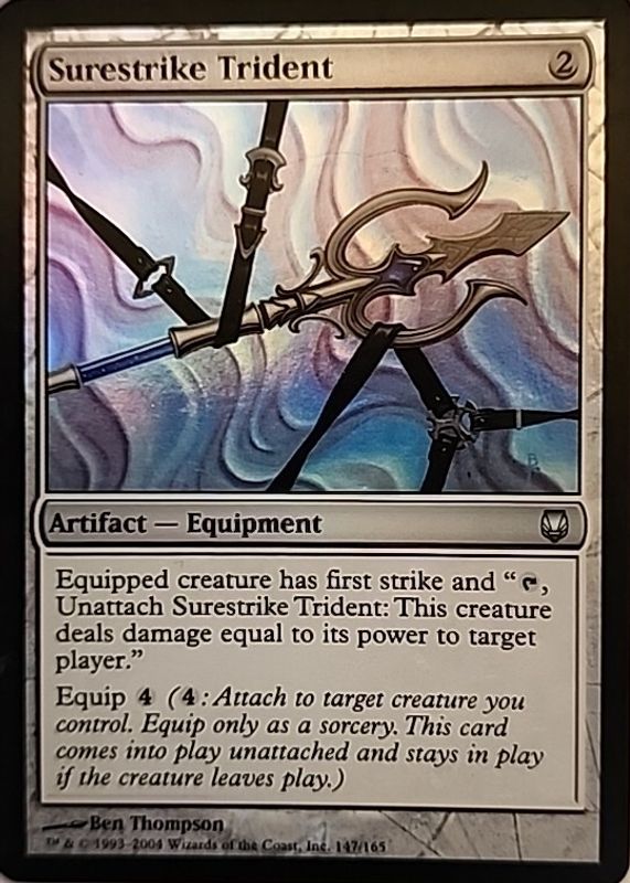 Surestrike Trident's Magic: The Gathering cards are available in at least 1 sets. Surestrike Trident's biggest 7-day price movers are 2004 Darksteel #147 Foil, and 2004 Darksteel #147 Base.