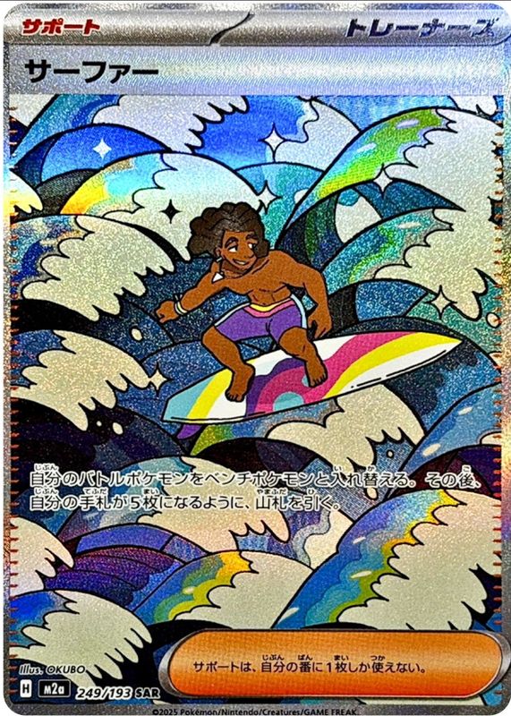 Surfer's Pokemon cards are available in at least 4 sets. Surfer's biggest 7-day price movers are 2026 Mega Evolution: Ascended Heroes #293/217 Special Illustration Rare, 2024 Japanese Scarlet & Violet: Paradise Dragona #061/064 Base, and 2024 Japanese Scarlet & Violet: Paradise Dragona #084/064 Super Rare (Full Art).