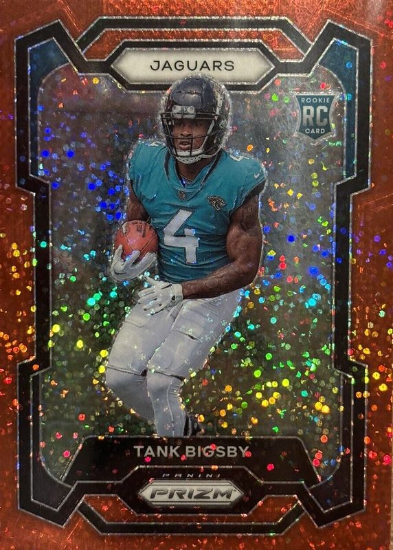 Tank Bigsby's Football cards are available in at least 32 sets. Tank Bigsby's biggest 7-day price movers are 2023 Prizm #348 Red Sparkle /(SSP), 2023 Optic #252 Rated Rookie Autographs (/199), and 2023 Prizm #348 White Sparkle /(SSP).