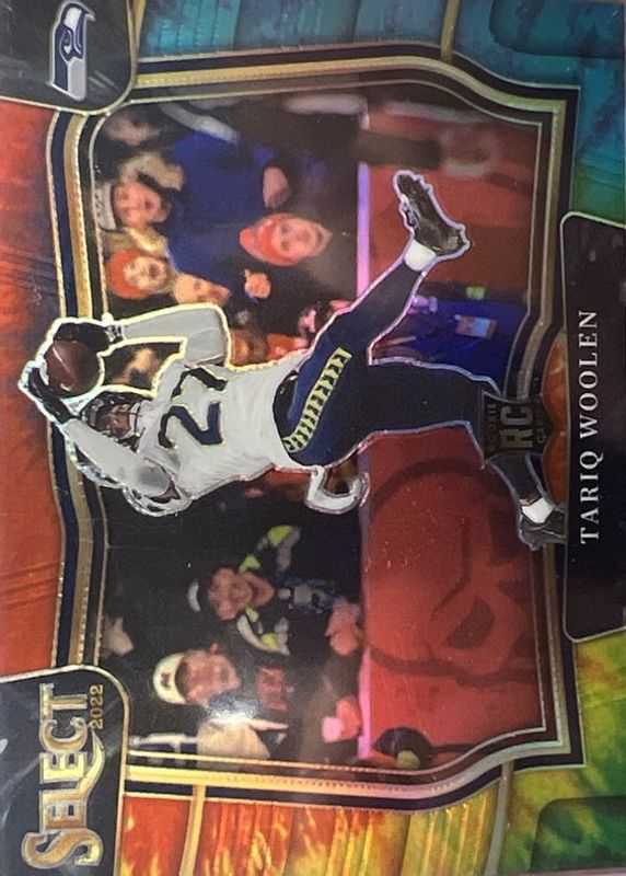 Tariq Woolen's Football cards are available in at least 13 sets. Tariq Woolen's biggest 7-day price movers are 2022 Select #490 Field Level Tie-Dye /25, 2025 National Treasures #SIG-TWN Signatures /99, and 2025 National Treasures #SIG-TWN Signatures - Holo Silver /25.