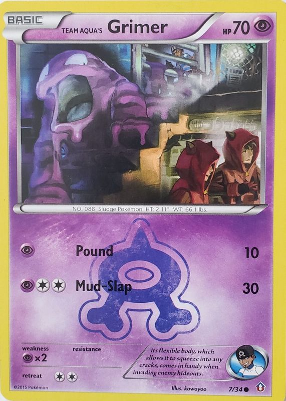Team Aqua's Grimer's Pokemon cards are available in at least 1 sets. Team Aqua's Grimer's biggest 7-day price movers are 2015 XY: Double Crisis #07/34 Base, and 2015 XY: Double Crisis #07/34 Reverse Holo.