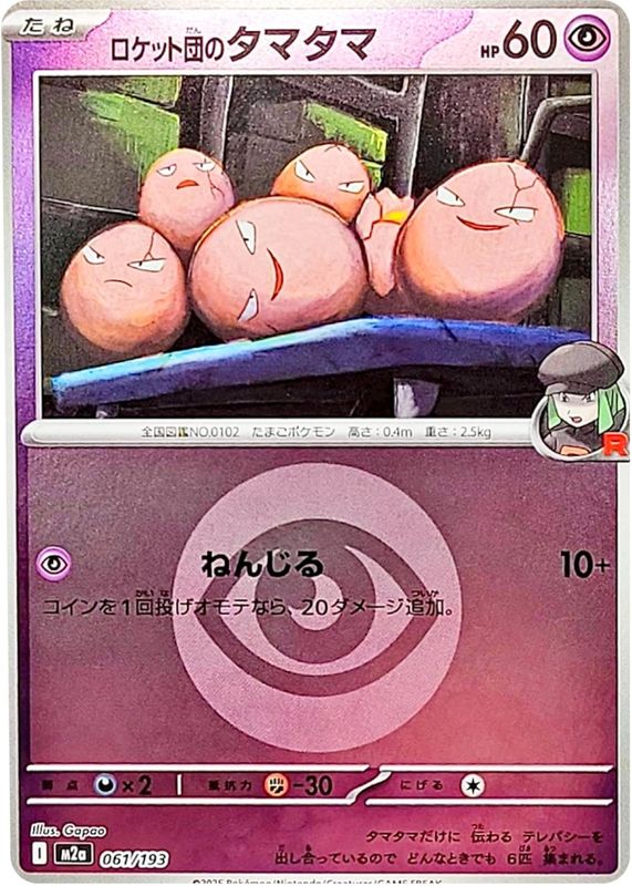 Team Rocket's Exeggcute's Pokemon cards are available in at least 2 sets. Team Rocket's Exeggcute's biggest 7-day price movers are 2025 Japanese Mega: Mega Dream ex #061/193 Energy Reverse Holo, 2025 Japanese Mega: Mega Dream ex #061/193 Base, and 2026 Mega Evolution: Ascended Heroes #77/217 Energy Reverse Holo.
