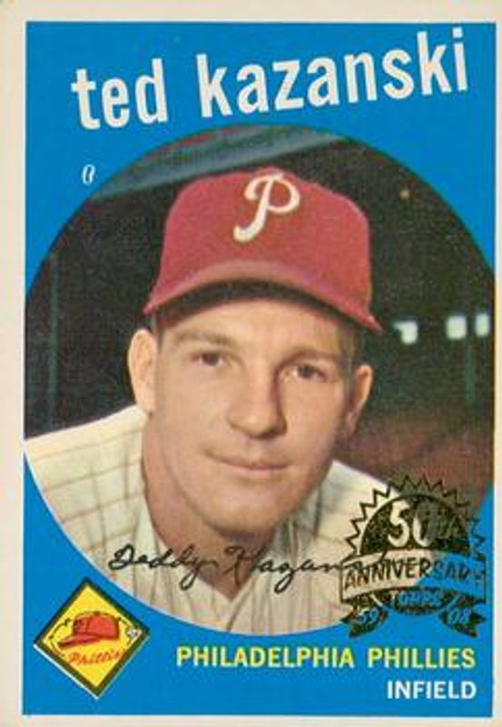 Ted Kazanski's Baseball cards are available in at least 9 sets. Ted Kazanski's biggest 7-day price movers are 2008 Topps Heritage #99 50th Anniversary Buybacks, 1955 Topps Stamps Base, and 1959 Topps Venezuelan #99 Base.