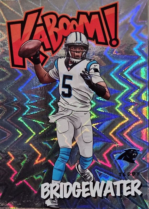 Teddy Bridgewater's Football cards are available in at least 12 sets. Teddy Bridgewater's biggest 7-day price movers are 2020 Absolute #K-TEB Kaboom! /(SSP), 2019 Plates & Patches #145 2018 Panini Unparalleled - Printing Plates Magenta /1, and 2014 Prizm #AR-TB Autographed Rookies - Blue /75.