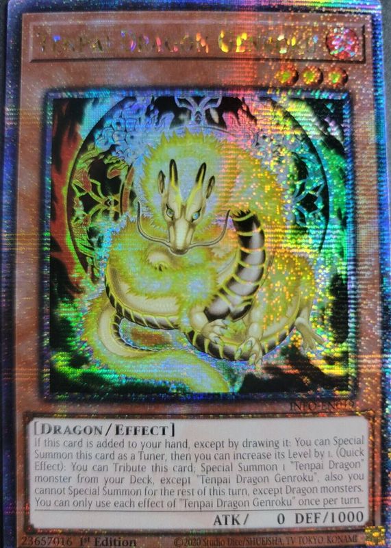 Tenpai Dragon Genroku's Yu-Gi-Oh! cards are available in at least 1 sets. Tenpai Dragon Genroku's biggest 7-day price movers are 2024 The Infinite Forbidden #INFO-EN019 1st Edition Quarter Century Secret Rare, and 2024 The Infinite Forbidden #INFO-EN019 1st Edition Ultra Rare.