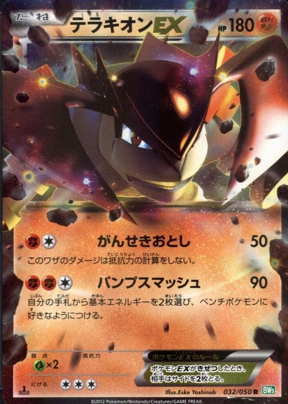 Terrakion ex's Pokemon cards are available in at least 2 sets. Terrakion ex's biggest 7-day price movers are 2012 Japanese Black & White: Dragon Blast #032/050 1st Edition Holo, 2012 Black & White: Dragons Exalted #121/124 Holo (Full Art), and 2012 Japanese Black & White: Dragon Blast #052/050 1st Edition Holo (Full Art).