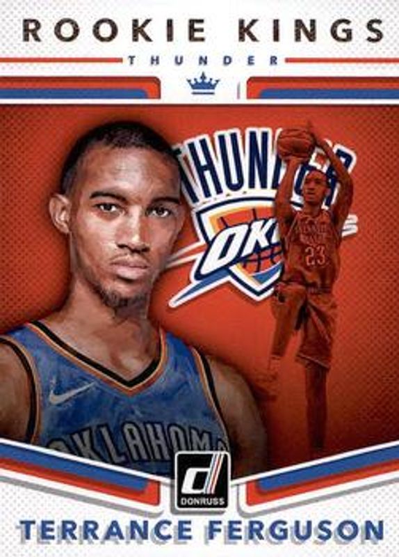 Terrance Ferguson (NBA)'s Basketball cards are available in at least 33 sets. Terrance Ferguson (NBA)'s biggest 7-day price movers are 2017 Donruss #21 Rookie Kings, 2017 Donruss #21 Rookie Kings - Press Proof Black /1, and 2017 Donruss #21 Next Day Autographs.