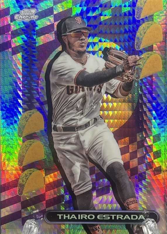Thairo Estrada's Baseball cards are available in at least 15 sets. Thairo Estrada's biggest 7-day price movers are 2023 Topps Chrome #TF-287 TacoFractor /5, 2024 Topps #290 Golden Mirror Image Variation /(SSP), and 2024 Topps #290 Team Color Border Variation /(SSP).
