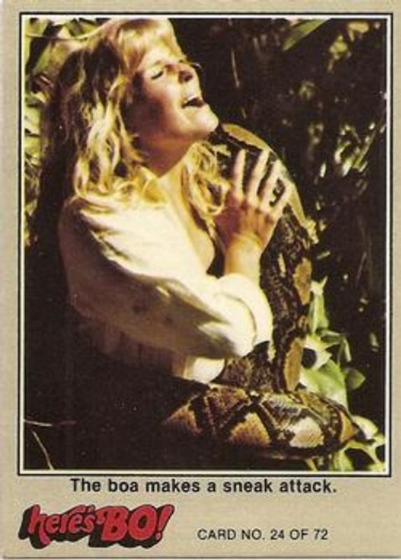 The boa makes a sneak attack's Pop Culture cards are available in at least 1 sets. The boa makes a sneak attack's biggest 7-day price movers are 1981 Fleer Here's Bo! #24a Base, 1981 Fleer Here's Bo! #24d Base, and 1981 Fleer Here's Bo! #24c Base.