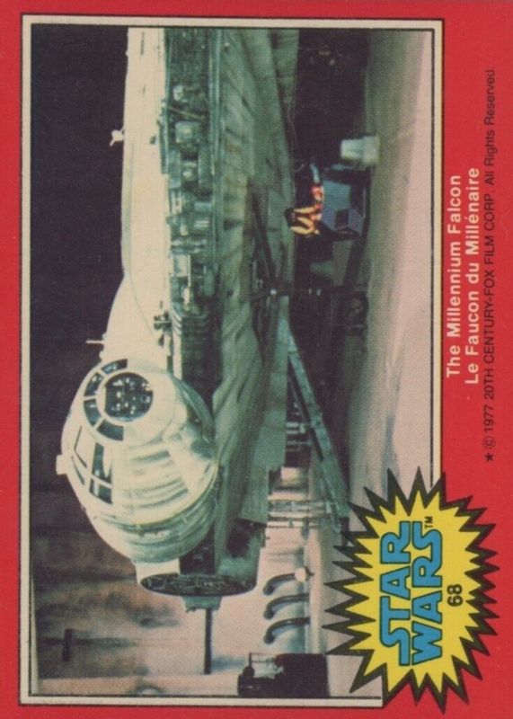The Millennium Falcon's Star Wars cards are available in at least 2 sets. The Millennium Falcon's biggest 7-day price movers are 1977 Topps #68 Base, 2024 Topps Chrome Star Wars #S-1 Starships, and 2024 Topps Chrome Star Wars #S-1 Starships - Superfractor /1.