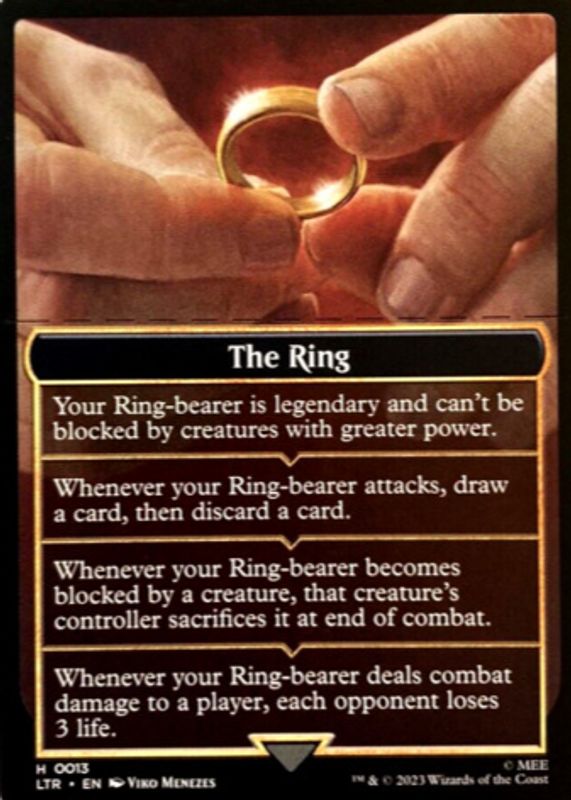 The Ring's Magic: The Gathering cards are available in at least 1 sets. The Ring's biggest 7-day price movers are 2023 The Lord of the Rings: Tales of Middle-Earth #13 Base.