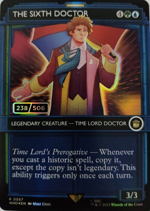 The Sixth Doctor's Magic: The Gathering cards are available in at least 1 sets. The Sixth Doctor's biggest 7-day price movers are 2023 Universes Beyond: Doctor Who #0557 Serial Numbered (/506).