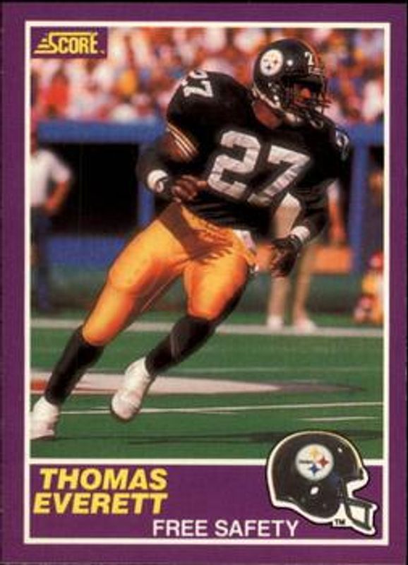 Thomas Everett's Football cards are available in at least 6 sets. Thomas Everett's biggest 7-day price movers are 1989 Score Supplemental #390S Base, 1994 Pinnacle Select #193 Base, and 1996 Pacific Dynagon #BKS-94 Best Kept Secrets.