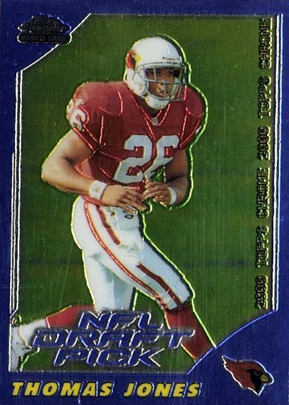 Thomas Jones' Football cards are available in at least 14 sets. Thomas Jones' biggest 7-day price movers are 2000 Topps Chrome #242 Base Rookie /1650, 2000 Bowman Chrome #168 Base /499, and 2000 Topps Chrome #242 Rookie Refractor /150.