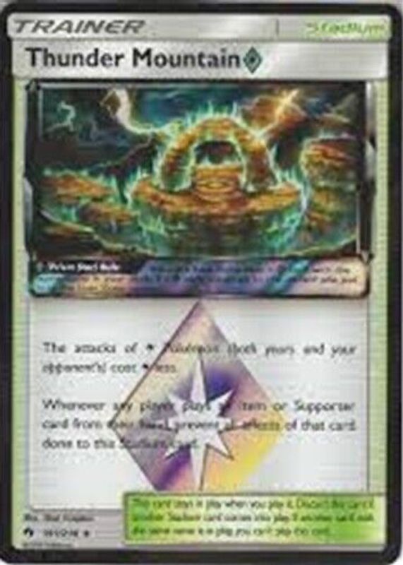 Thunder Mountain Prism Star's Pokemon cards are available in at least 2 sets. Thunder Mountain Prism Star's biggest 7-day price movers are 2018 Sun & Moon: Lost Thunder #191/214 Holo, and 2018 Japanese Sun & Moon: Thunderclap Spark #058/060 Holo.