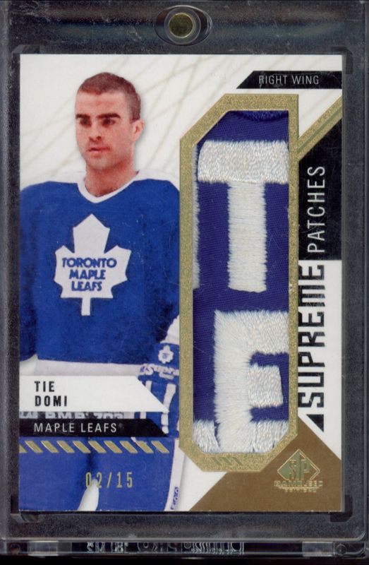 Tie Domi's Hockey cards are available in at least 132 sets. Tie Domi's biggest 7-day price movers are 2018 SP Game Used #PA-TD Supreme Jumbo Relics Patch /15, 2018 SP Game Used #PA-TD Supreme Jumbo Relics Gloves /15, and 2005 Upper Deck MVP #355 Base.