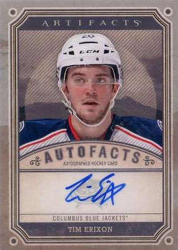 Tim Erixon's Hockey cards are available in at least 20 sets. Tim Erixon's biggest 7-day price movers are 2013 Upper Deck Artifacts #A-TE Autofacts, 2011 Upper Deck Artifacts #220 Base /699, and 2013 Panini Rookie Anthology #SS-TER 2013 Score Update: Score Signatures.