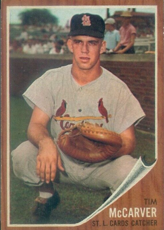 Tim McCarver's Baseball cards are available in at least 45 sets. Tim McCarver's biggest 7-day price movers are 1962 Topps #167 Base, 2022 Topps Heritage #ROA-TMC Real One Autographs, and 2022 Topps Heritage #ROA-TMC Real One Autographs - Red Ink /73.