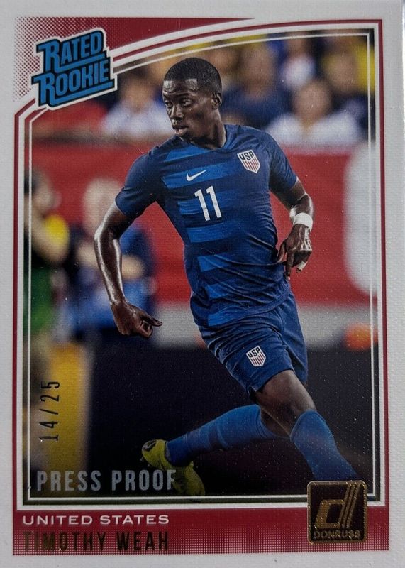 Timothy Weah's Soccer cards are available in at least 43 sets. Timothy Weah's biggest 7-day price movers are 2018 Donruss #198 Press Proof Canvas /25, 2024 Topps Gold x WalkerTKL UEFA Current Stars - Pink /75, and 2024 Topps Gold x WalkerTKL UEFA Current Stars - Gold /1.