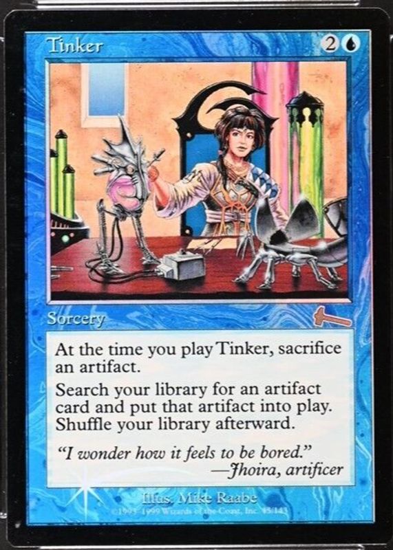 Tinker's Magic: The Gathering cards are available in at least 1 sets. Tinker's biggest 7-day price movers are 1999 Urza's Legacy #45 Foil, and 1999 Urza's Legacy #45 Base.