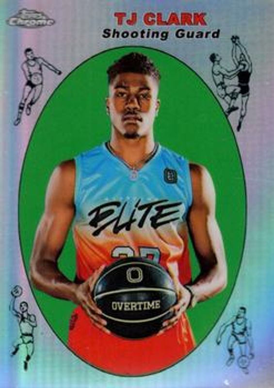 TJ Clark's Basketball cards are available in at least 5 sets. TJ Clark's biggest 7-day price movers are 2021 Topps Chrome OTE Overtime Elite #69TB-6 1969 Topps Basketball, 2021 Topps Chrome OTE Overtime Elite #69TB-6 1969 Topps Basketball - Printing Plates Black /1, and 2021 Topps Chrome OTE Overtime Elite #69TB-6 1969 Topps Basketball - Orange Refractor /25.