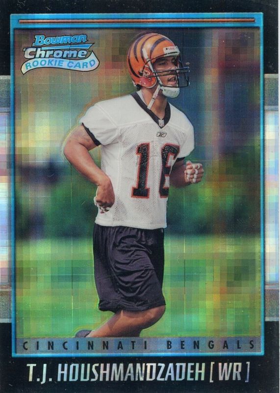 TJ Houshmandzadeh's Football cards are available in at least 88 sets. TJ Houshmandzadeh's biggest 7-day price movers are 2025 Certified #MS-THO Mirror Signatures - Mirror Lime Green /15, 2025 Certified #MS-THO Mirror Signatures - Mirror Black /1, and 2025 Certified #MS-THO Mirror Signatures - Mirror Gold /10.