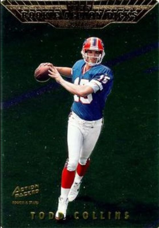 Todd Collins' Football cards are available in at least 22 sets. Todd Collins' biggest 7-day price movers are 1995 Action Packed Rookies & Stars #83 Stargazers, 1995 Action Packed Rookies & Stars #83 Base, and 1995 Action Packed Monday Night Football #94 Base.