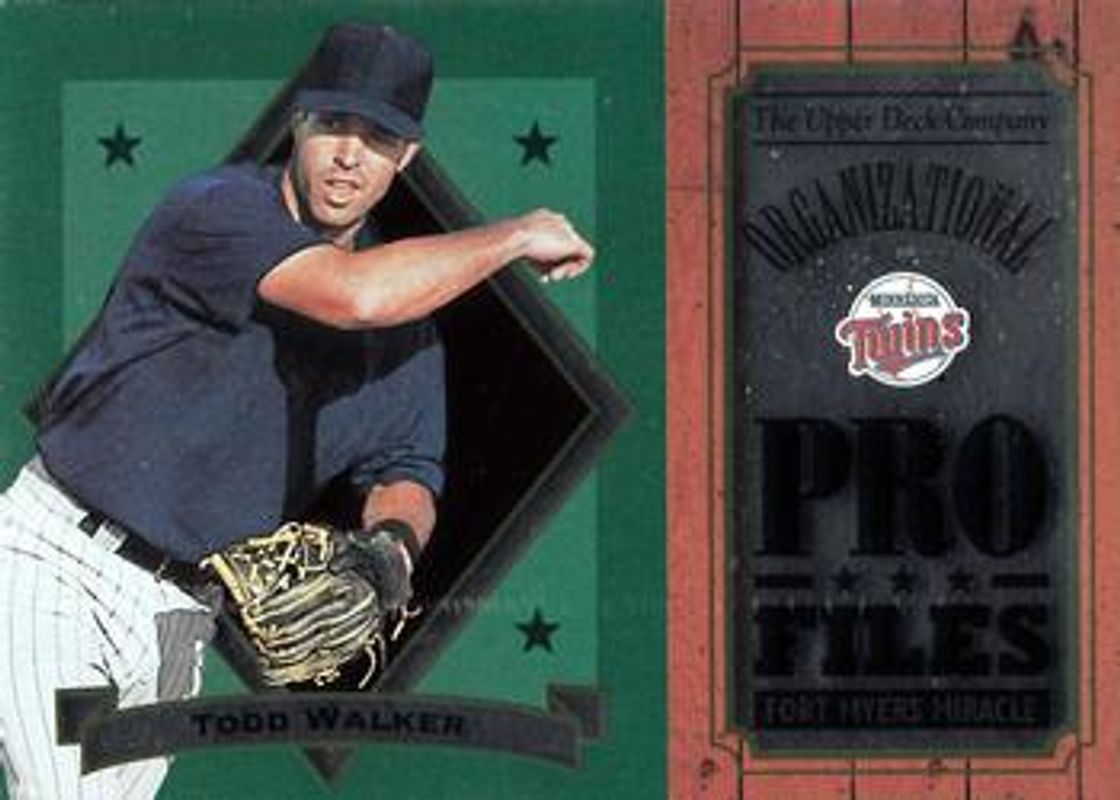 Todd Walker's Baseball cards are available in at least 40 sets. Todd Walker's biggest 7-day price movers are 1995 Upper Deck Minor League #OP~16 Organizational Profiles, 1995 Upper Deck Minor League #170 Future Stock, and 1995 Upper Deck Minor League #170 Base.